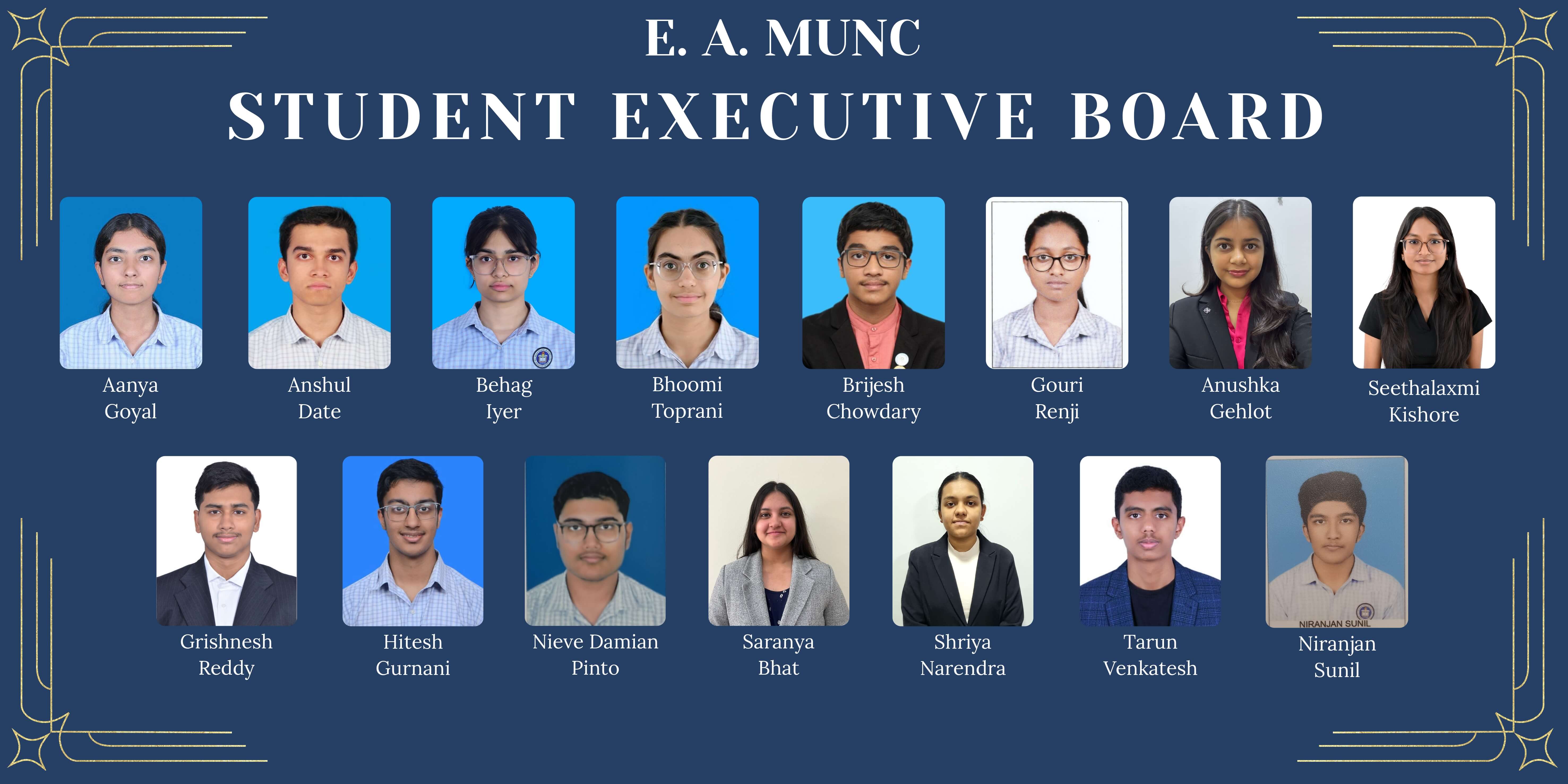 E.A. MUNC has been built on the strong foundation of unity and diversity of our predecessors, for unity is what gives us the power to create an impact, and diversity is what enables us to acknowledge and respect different opinions. From the very first edition of the conference, our delegates have showcased the spirit of change, envisioning a world that is just and sustainable for themselves and for future generations. Amidst the chaos that ensues in today’s divided world, our agendas unite delegates in addressing the need to collaborate and combat critical global issues.